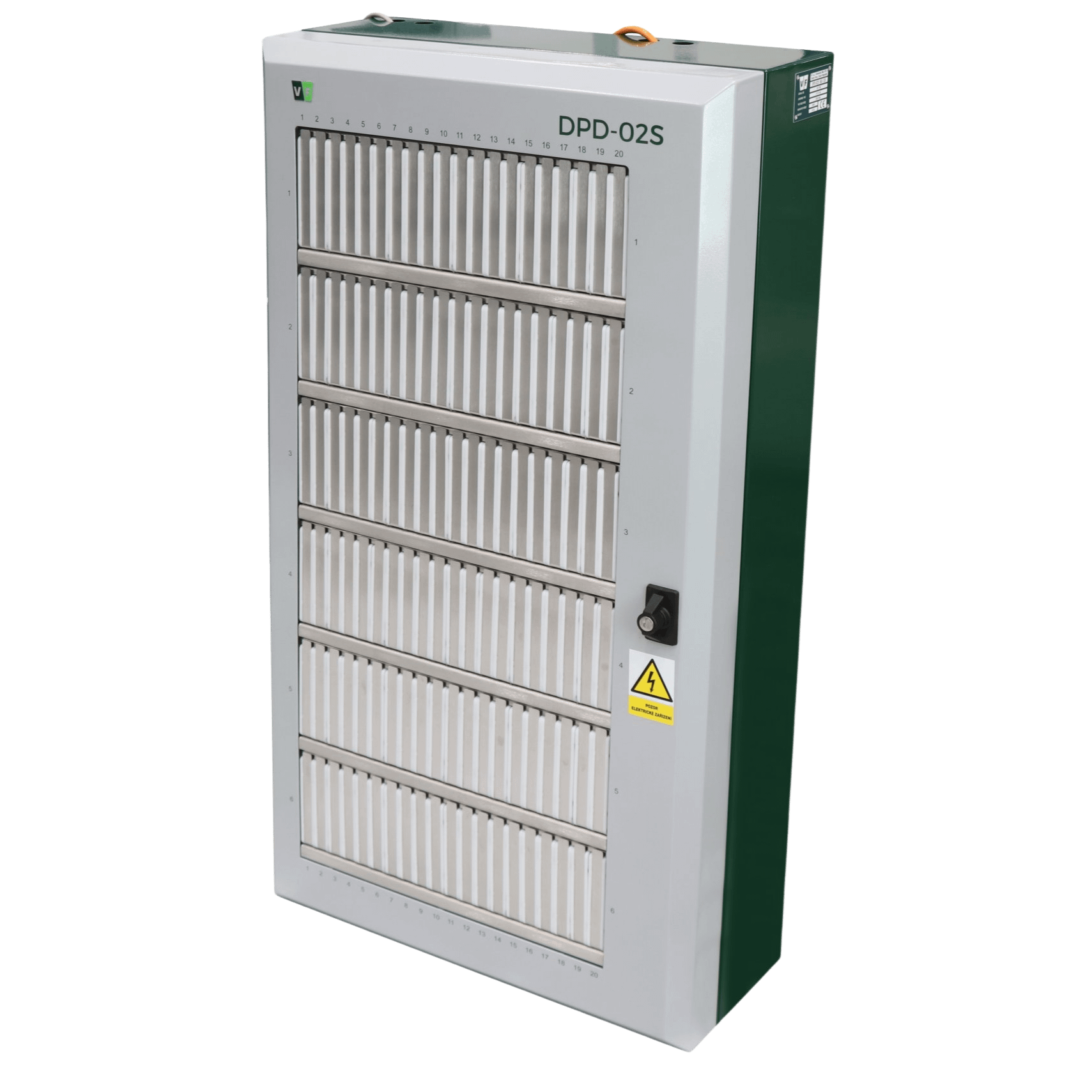 DPD-02S Dispenser of Personal Dosimeters are used for the automatic, fast and controlled issuing of personal dosimeters for workers that enter into radiation-controlled areas in nuclear power plants and other nuclear facilities, and also in hospitals and other workplaces.