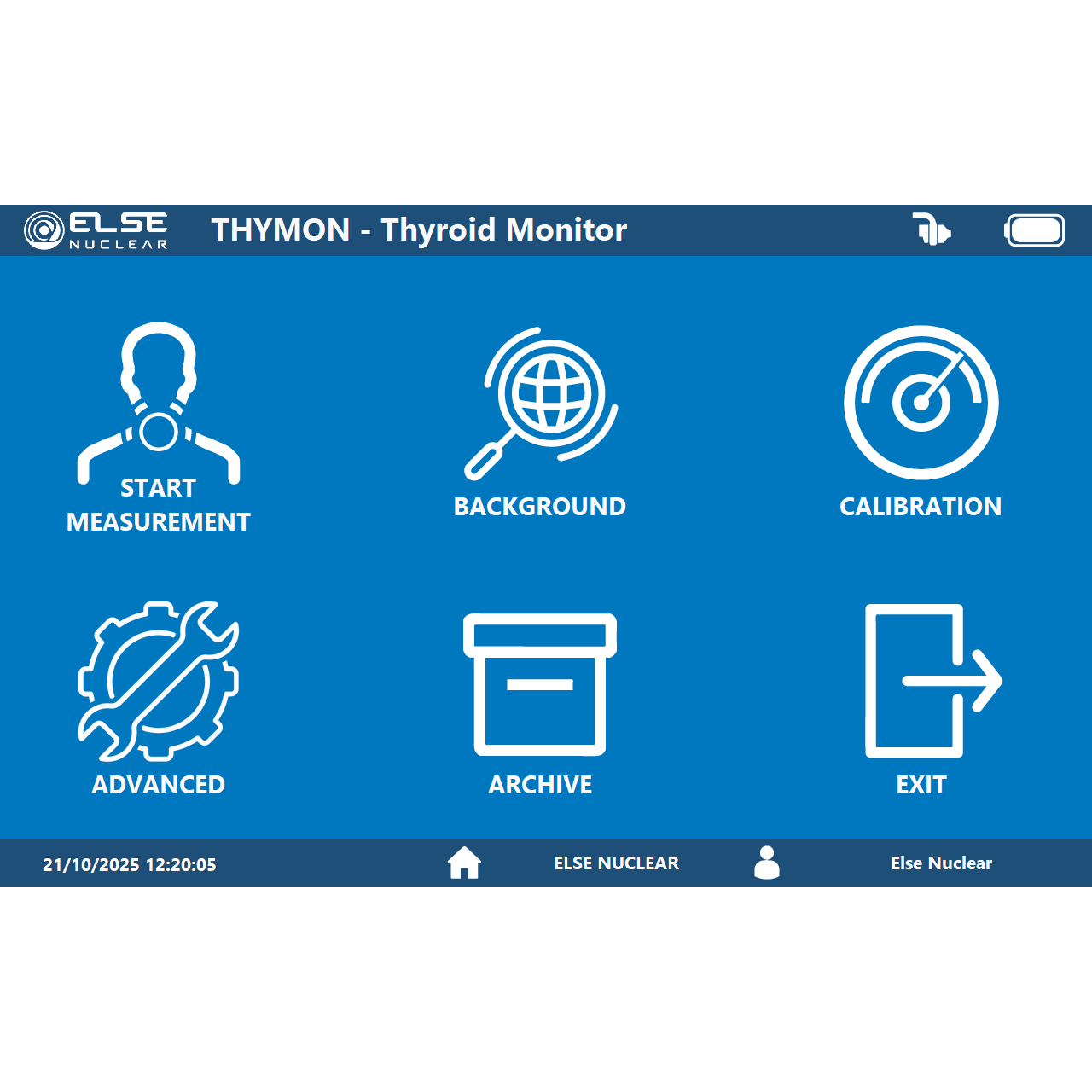 THYMON is a compact NaI(Tl)-based detector specifically conceived to fast, yet reliably, measure I-131 contamination in thyroid. Its compactness, ruggedness, light-weight, together with its simple and intuitive built-in software interface, make the device perfectly suited for emergency screening applications. The instrument can be used either hand-held or hands-free. The instrument is composed by three main subparts: